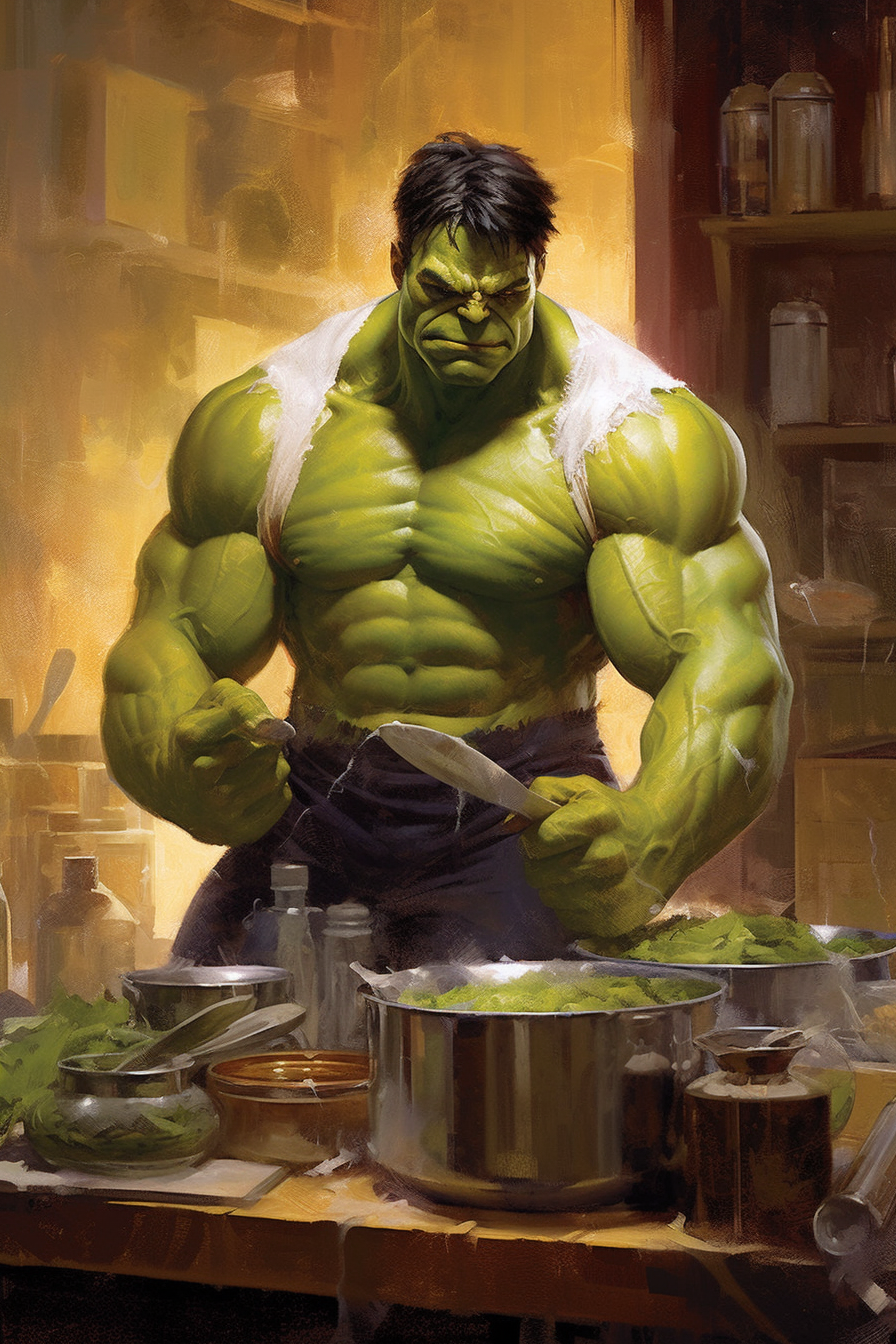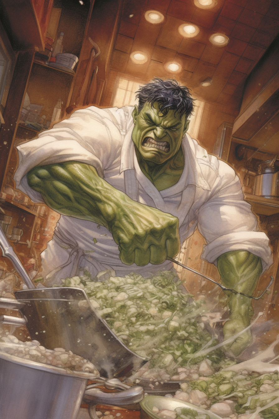 미드저니로 만든 마블 vs 디씨 요리대회 이미지