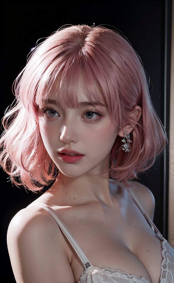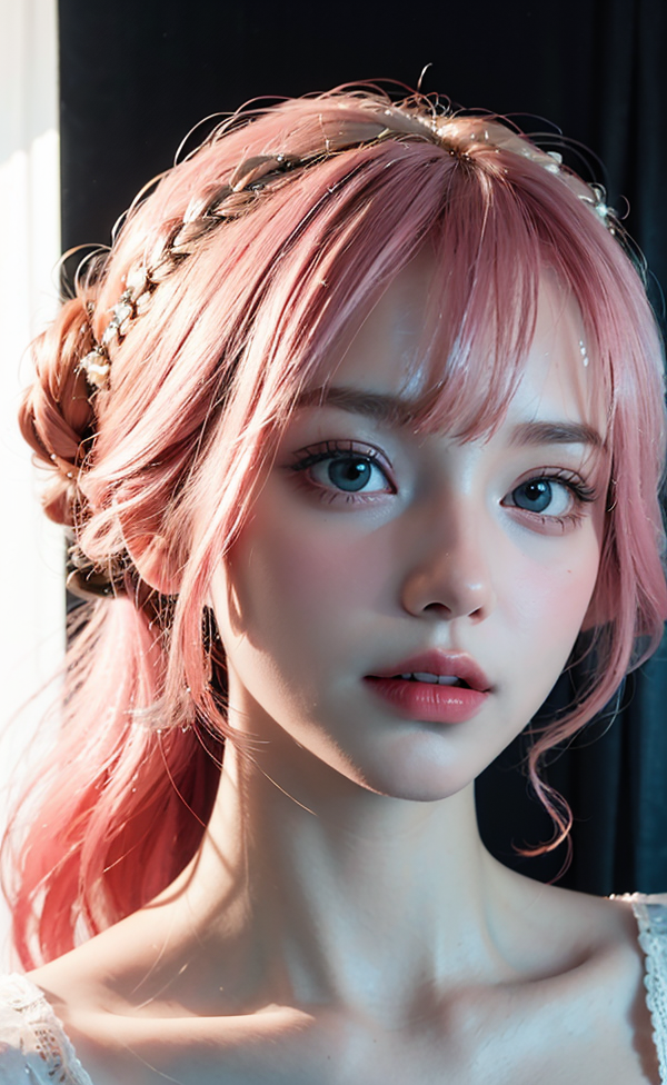(in the dark:1.6), Hyperrealist portrait of female by david hockney and alphonse mucha, fantasy art, photo realistic, dynamic lighting, artstation, poster, volumetric lighting, very detailed faces, 4 k, award winning, 1girl, in the dark, deep shadow, low key, cowboy shot, pink hair, on the bed, ID Photo,